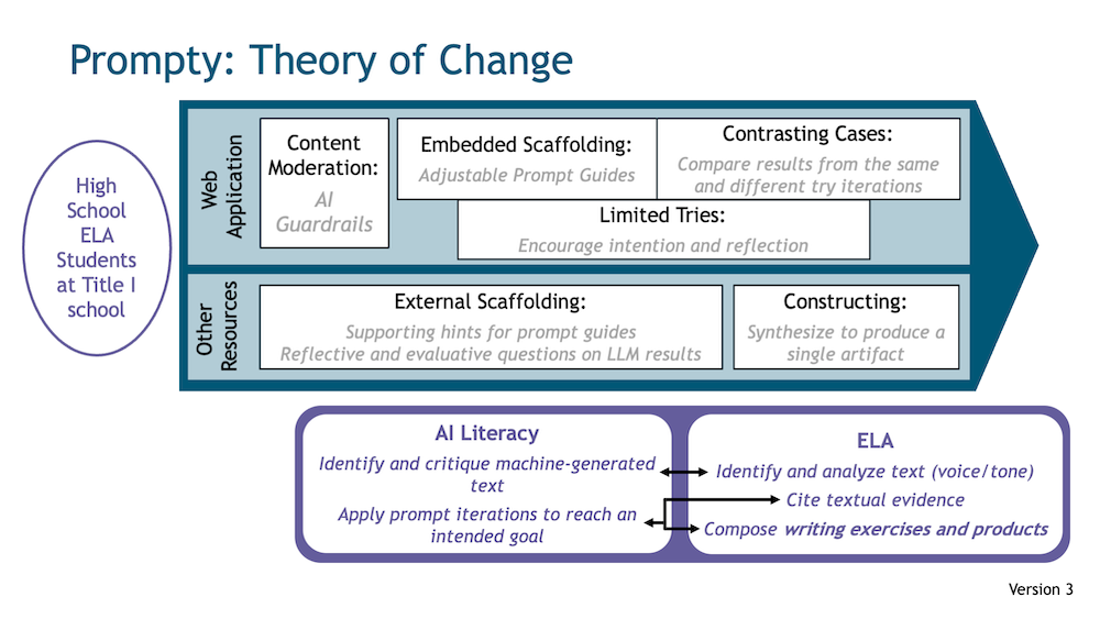 I presented a conference paper, "From Consumers to Critical Users: Prompty, an AI Literacy Tool for High School Students", written about the design and evaluation of this tool at EAAI-24: The 14th Symposium on Educational Advances in Artificial Intelligence in the Special Track: Resources for Teaching AI in K-12.